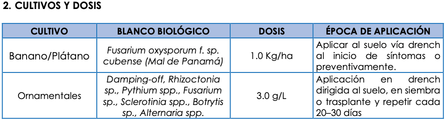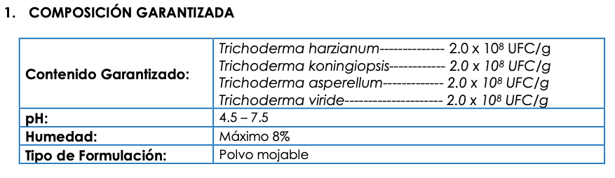 koningiopsis, Trichoderma asperellum y Trichoderma viride. Su formulación está diseñada