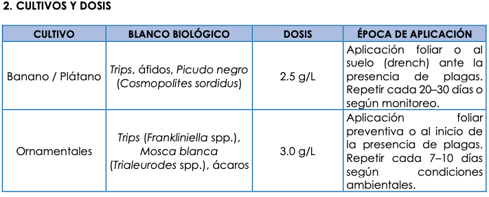los insectos plaga, proporcionando un control efectivo y sostenible en diversos cultivos agrícolas.